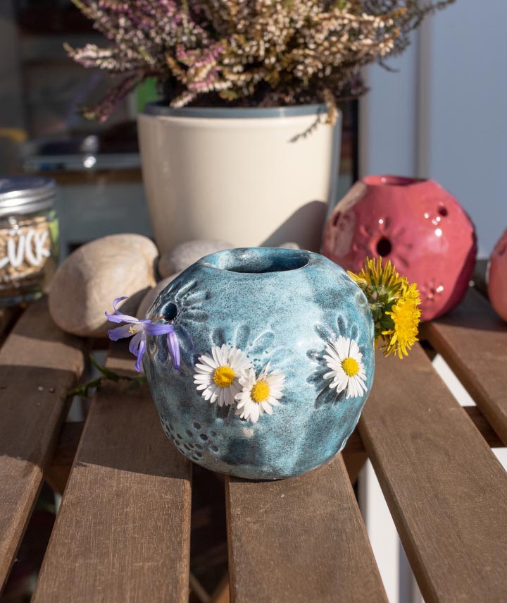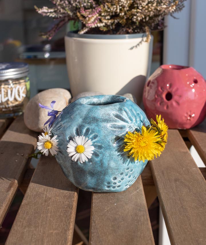 Jedes Keramikzeugstück ist ein Unikat und wird von Hand geworfen, signiert, glasiert, gebrannt und fertiggestellt.