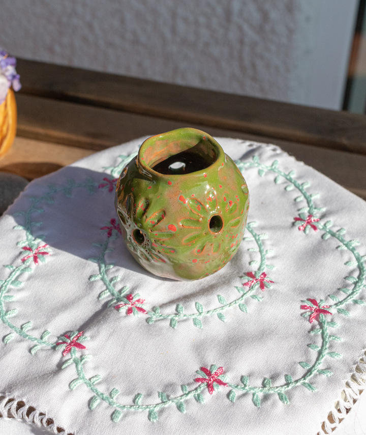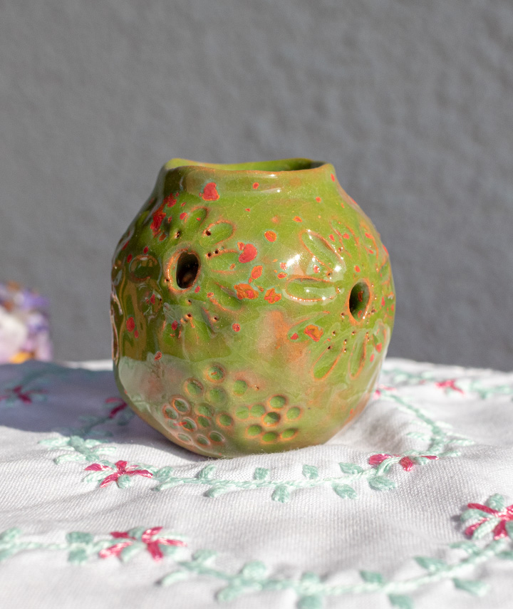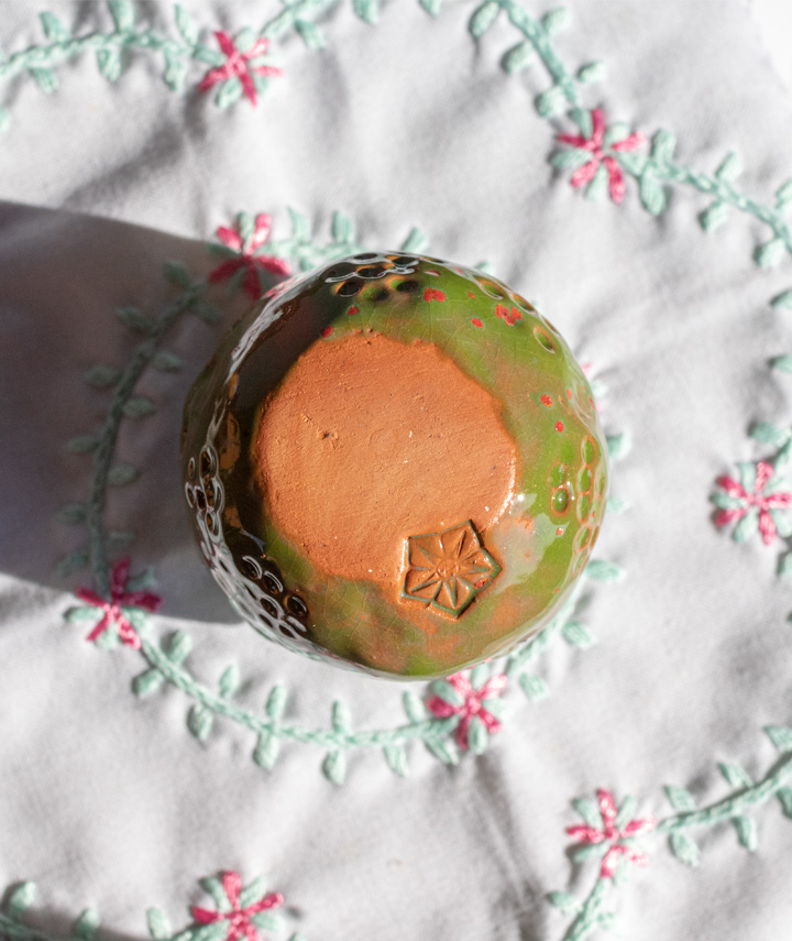 Jegliche Asymmetrie, Haarrisse, unregelmäßige Markierungen, Texturen und Oberflächen sind Teil der natürlichen Landschaft und Natur handgefertigter Keramik und können genossen werden.