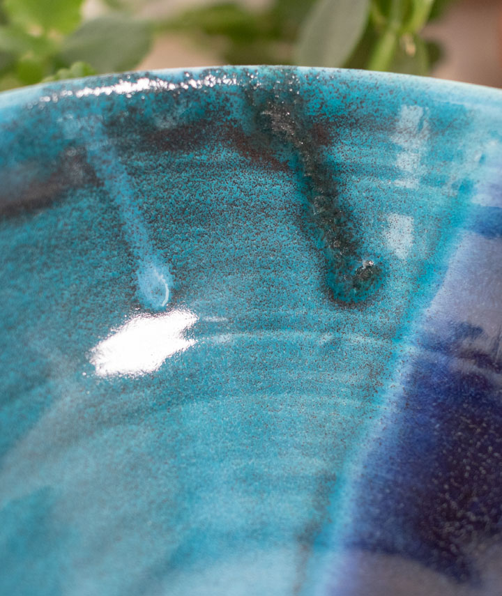 Jegliche Asymmetrie, Haarrisse, unregelmäßige Markierungen, Texturen und Oberflächen sind Teil der natürlichen Landschaft und Natur handgefertigter Keramik und können genossen werden.