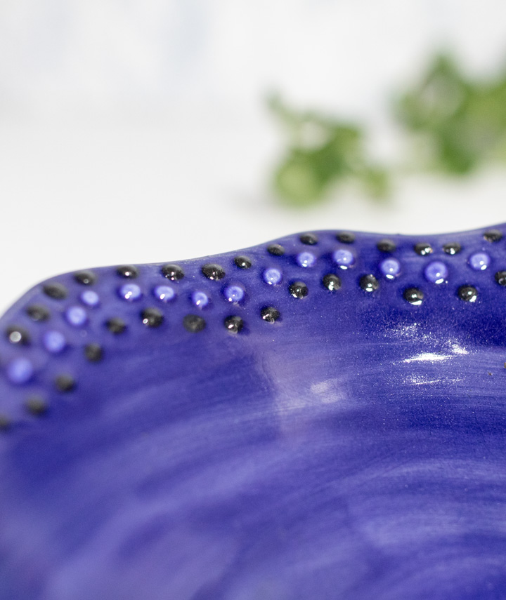 Jegliche Asymmetrie, Haarrisse, unregelmäßige Markierungen, Texturen und Oberflächen sind Teil der natürlichen Landschaft und Natur handgefertigter Keramik und können genossen werden.
