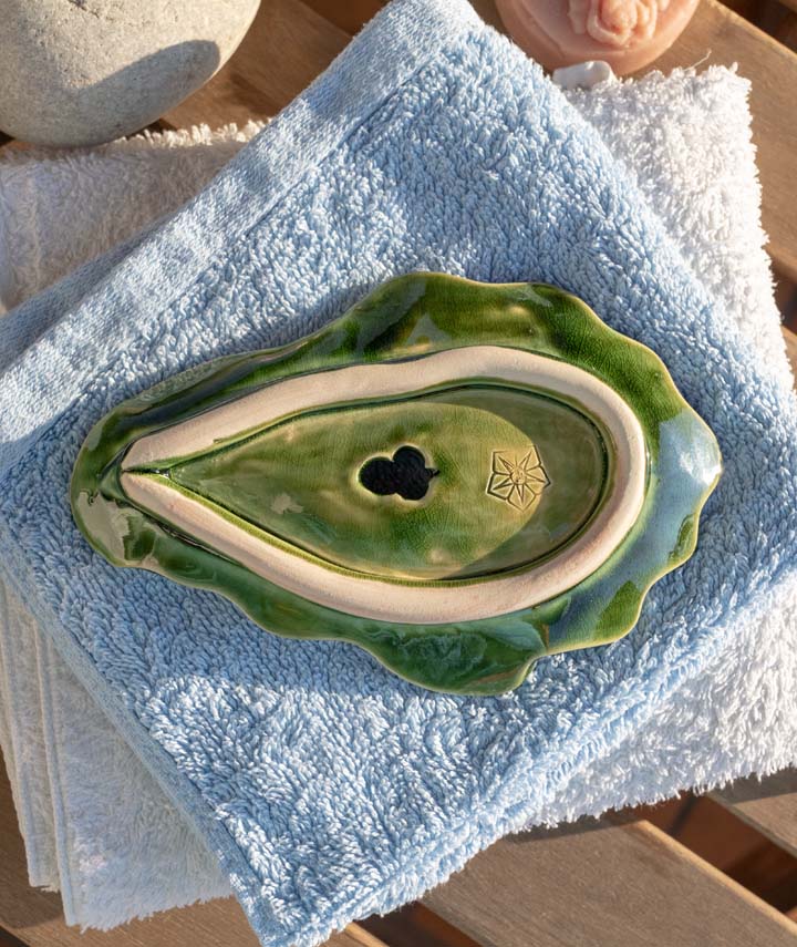 Auf Lager und versandbereit in 2-3 Werktagen.dgemacht Keramik SeifenschaleEichenblatt – Handgemacht Keramik Seifenschale