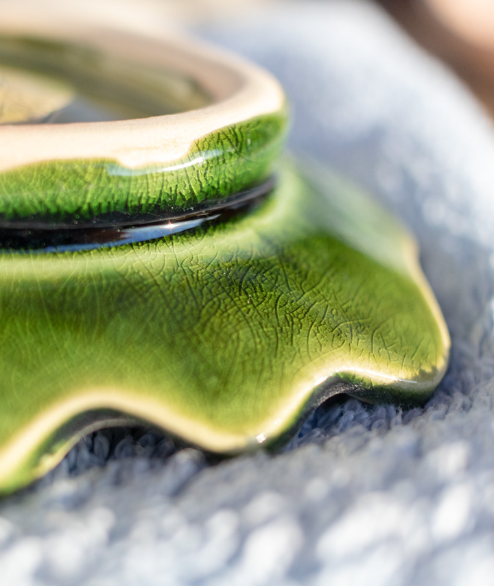 Jegliche Asymmetrie, Haarrisse, unregelmäßige Markierungen, Texturen und Oberflächen sind Teil der natürlichen Landschaft und Natur handgefertigter Keramik und können genossen werden.