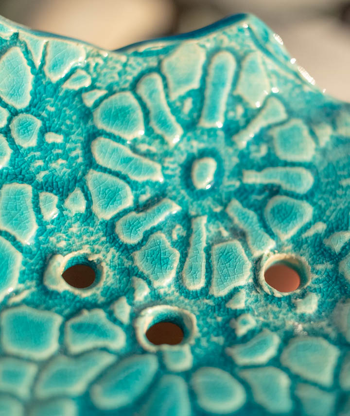 Jegliche Asymmetrie, Haarrisse, unregelmäßige Markierungen, Texturen und Oberflächen sind Teil der natürlichen Landschaft und Natur handgefertigter Keramik und können genossen werden.