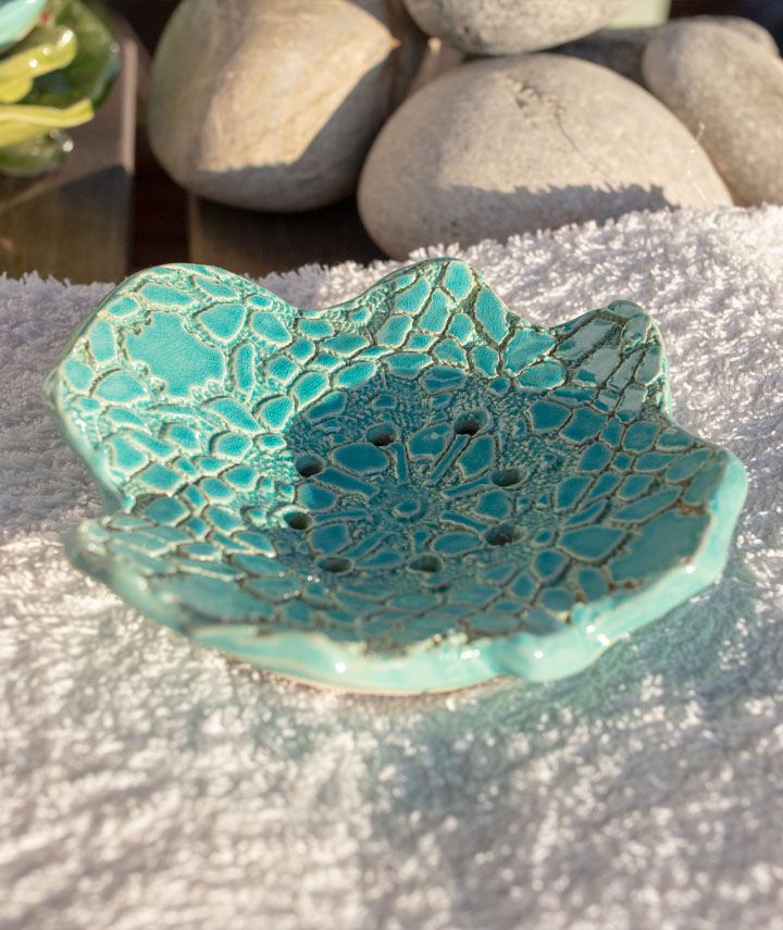 Jedes Keramikzeugstück ist ein Unikat und wird von Hand geworfen, signiert, glasiert, gebrannt und fertiggestellt.