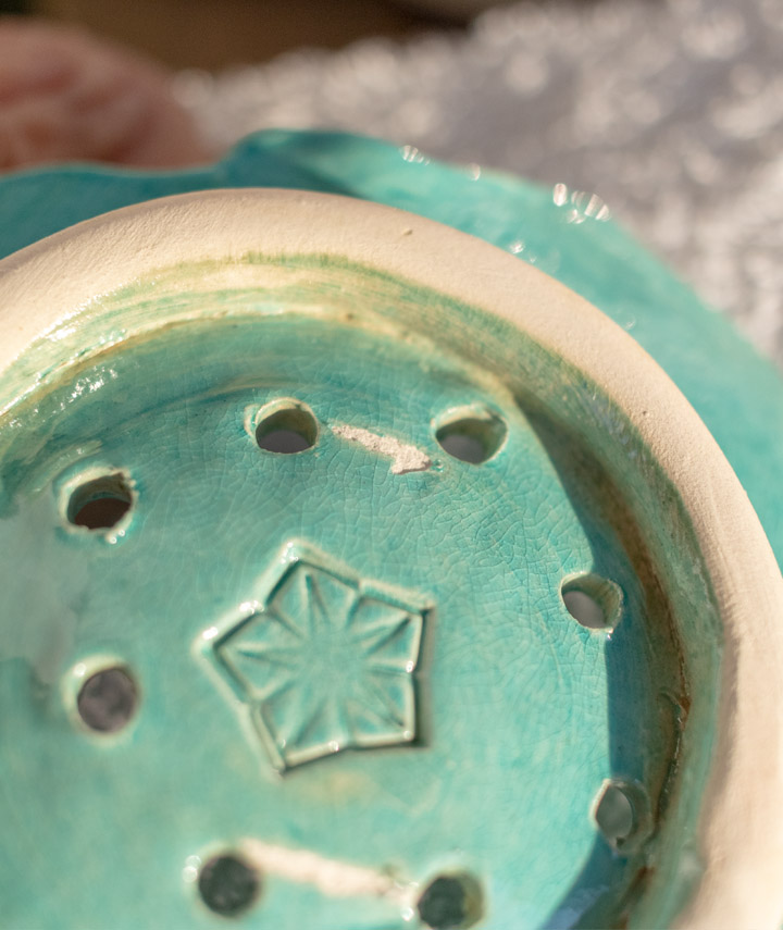 Jegliche Asymmetrie, Haarrisse, unregelmäßige Markierungen, Texturen und Oberflächen sind Teil der natürlichen Landschaft und Natur handgefertigter Keramik und können genossen werden.
