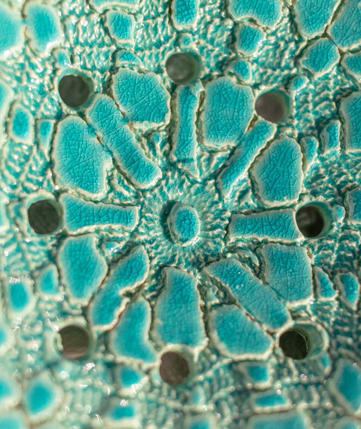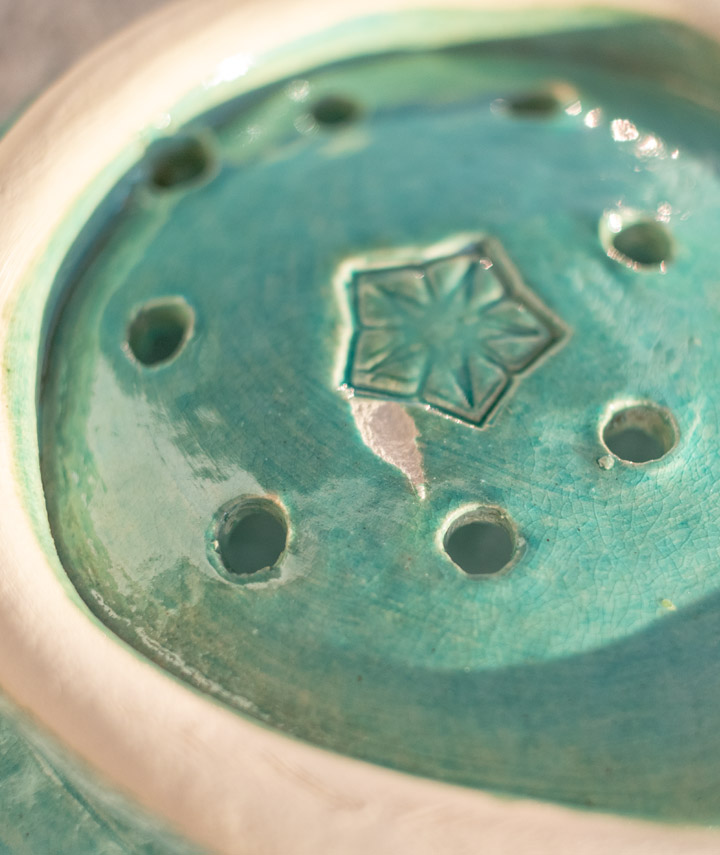 Jegliche Asymmetrie, Haarrisse, unregelmäßige Markierungen, Texturen und Oberflächen sind Teil der natürlichen Landschaft und Natur handgefertigter Keramik und können genossen werden.