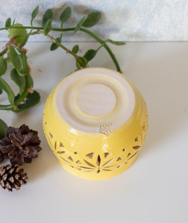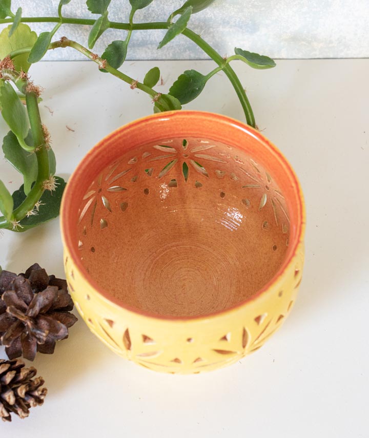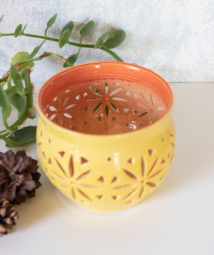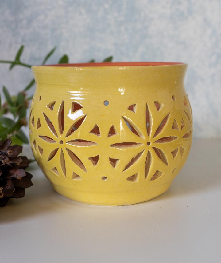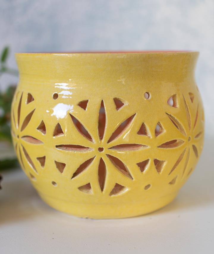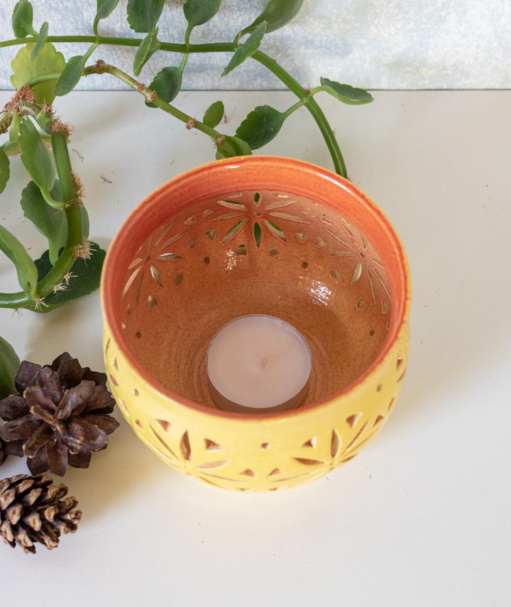 Gelb, Rot Blumen – Handgemacht Keramik Teelichthalter, Kerzenlampe