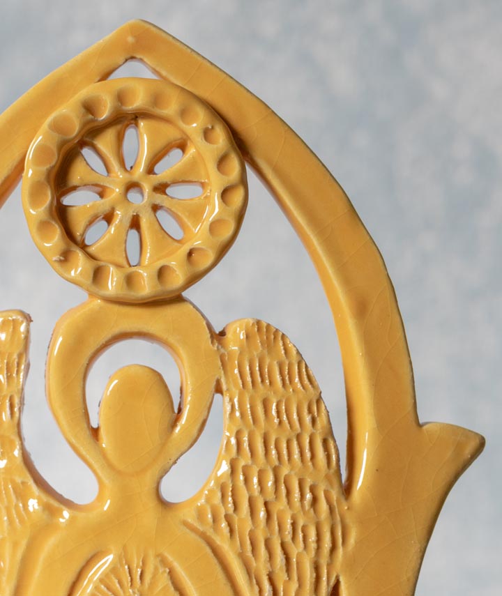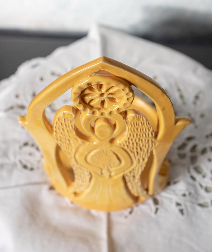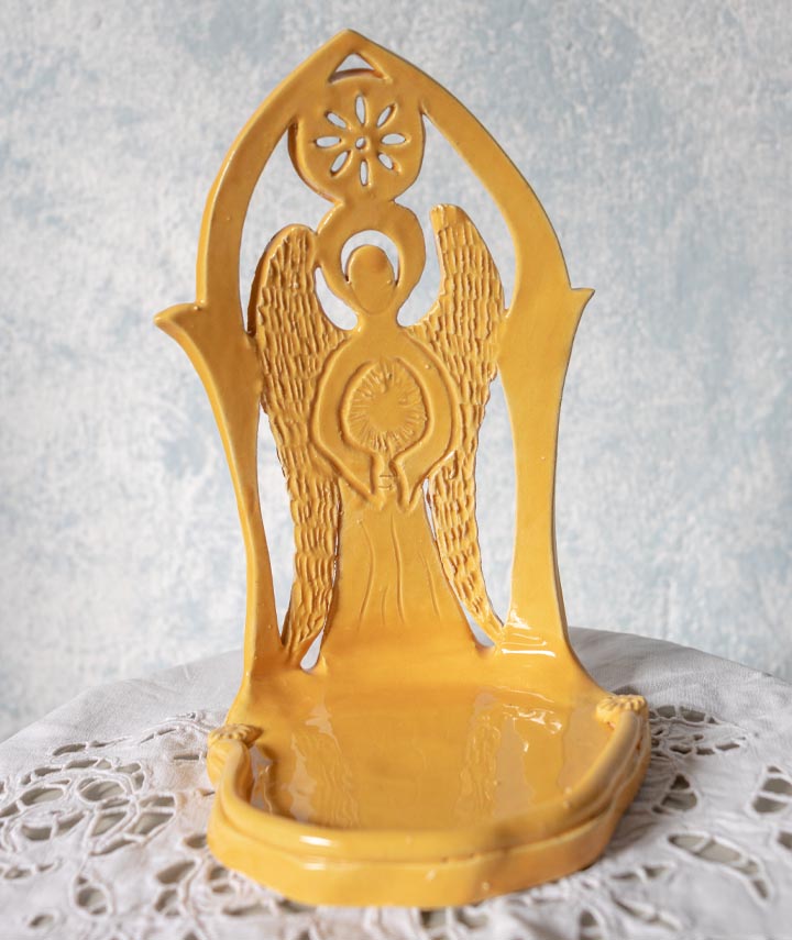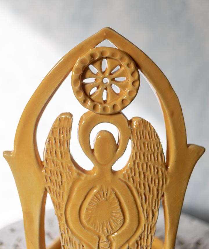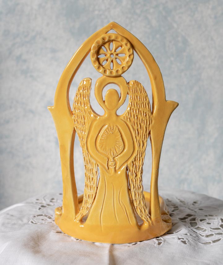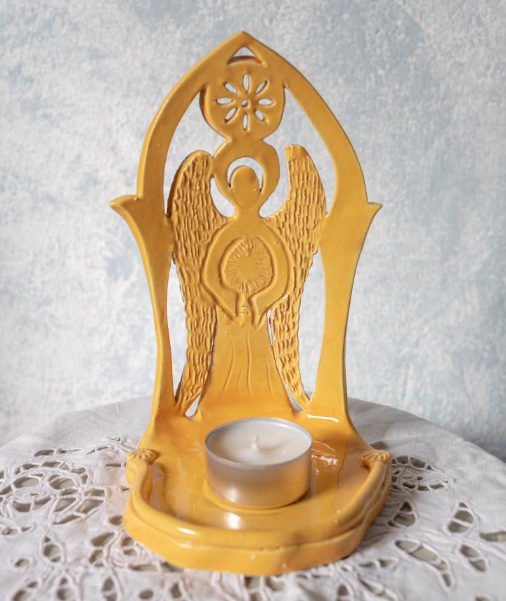 Gelb Schutzengel Teelichthalter, Kerzenhalter – Keramik – Handgemacht