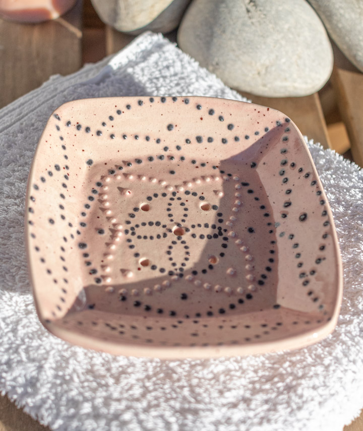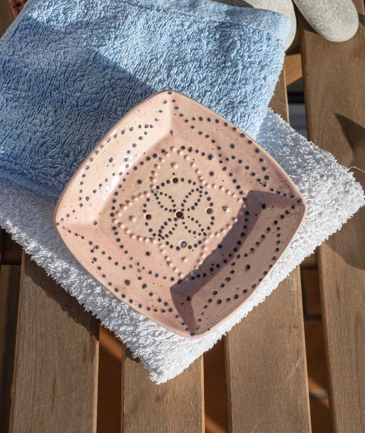 Ich habe es wirklich geliebt, diese speziellen Seifenschalen zuzubereiten. Das Mandala zu zeichnen und zu mustern war eine kleine Meditation. Diese Gelassenheit wird von jedem Stück getragen. Denn in jedem Werk steckt die Seele des Künstlers.