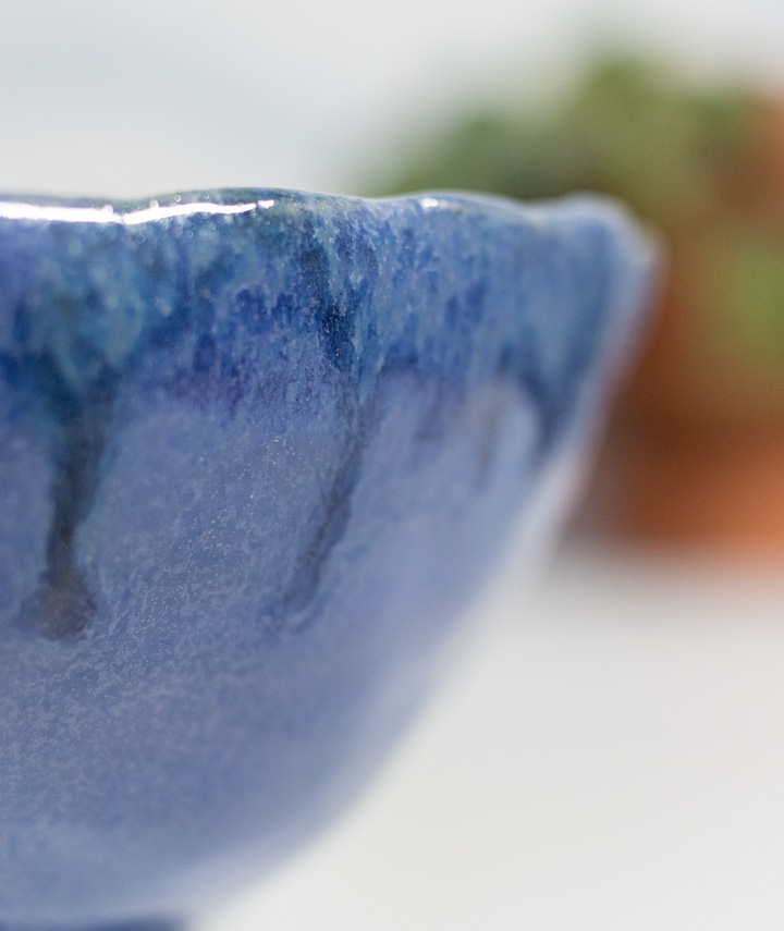 Jegliche Asymmetrie, Haarrisse, unregelmäßige Markierungen, Texturen und Oberflächen sind Teil der natürlichen Landschaft und Natur handgefertigter Keramik und können genossen werden.
