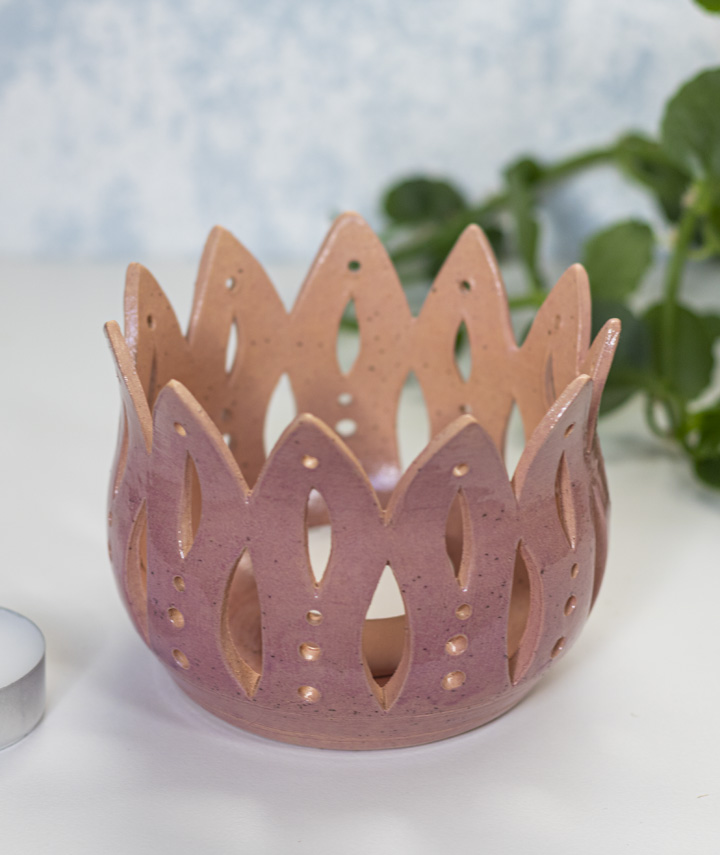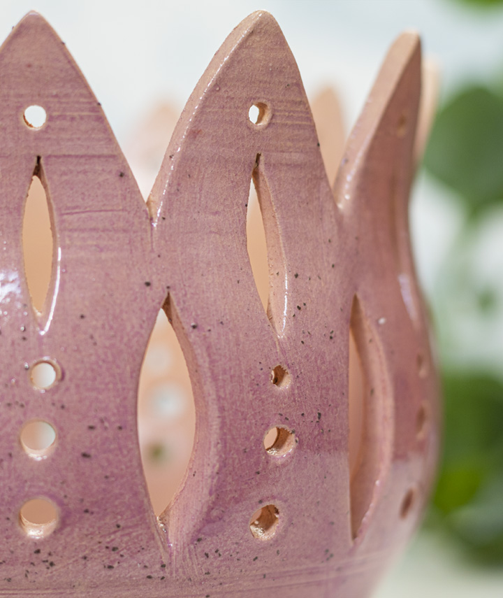 Hell Lila Tulpe – Handgemacht Keramik Teelichthalter, Kerzenlampe