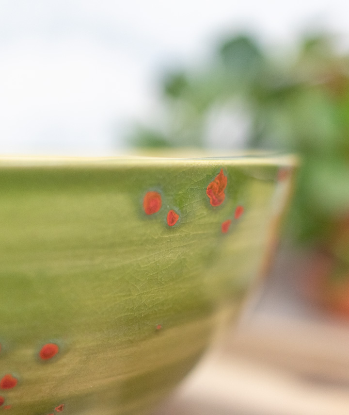 Jegliche Asymmetrie, Haarrisse, unregelmäßige Markierungen, Texturen und Oberflächen sind Teil der natürlichen Landschaft und Natur handgefertigter Keramik und können genossen werden.