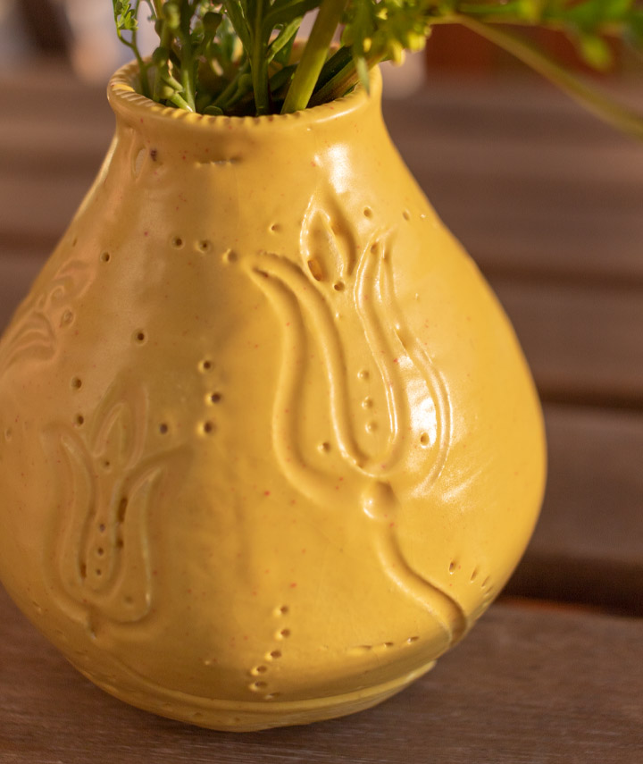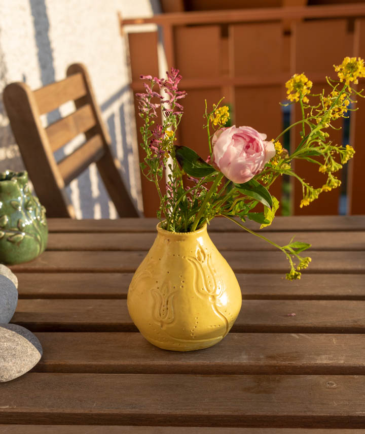 Be the first to review “Kleine Gelb Vase mit Tulpenmuster”