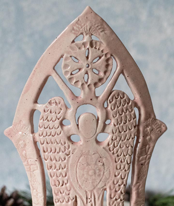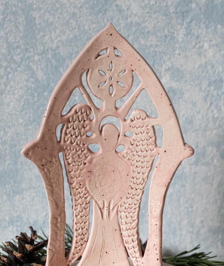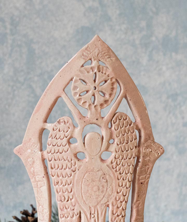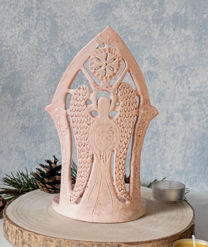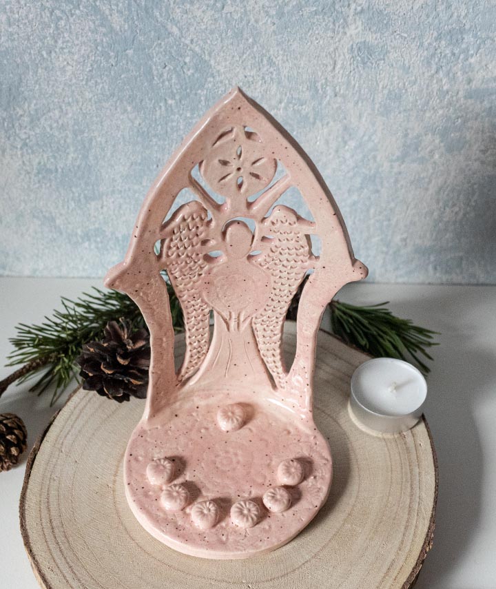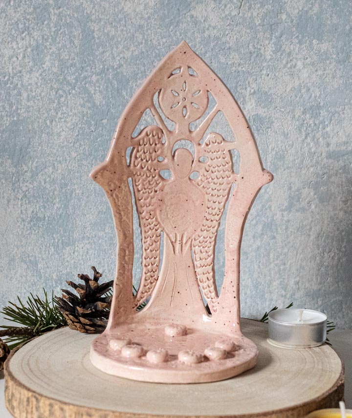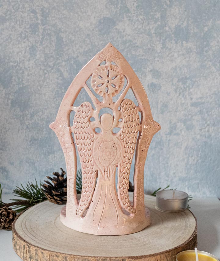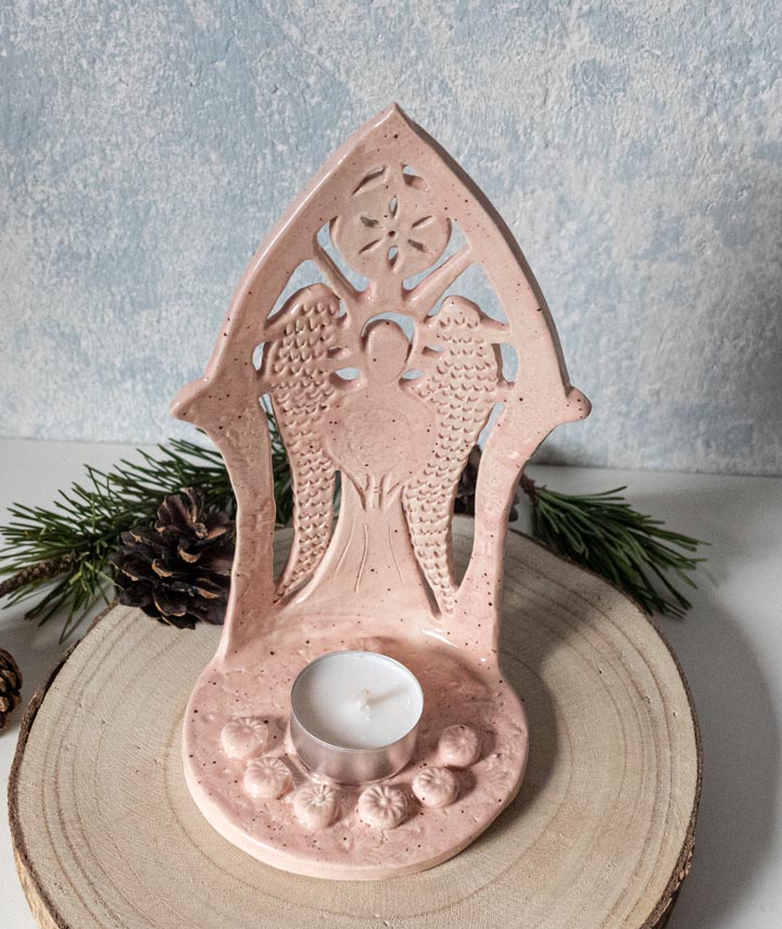 Rosa Schutzengel mit Sonne, Teelichthalter, Kerzenhalter – Keramik – Handgemacht