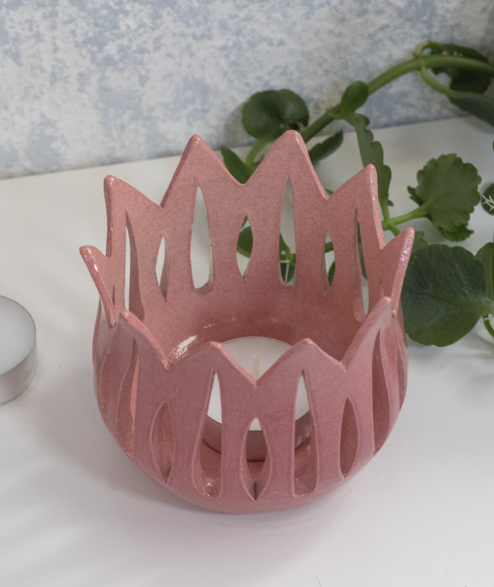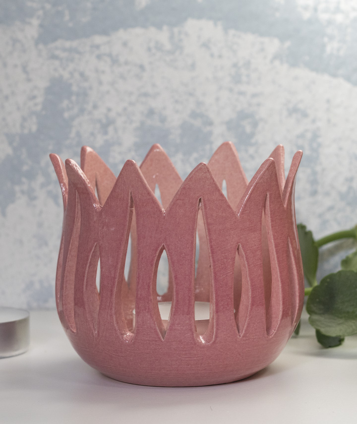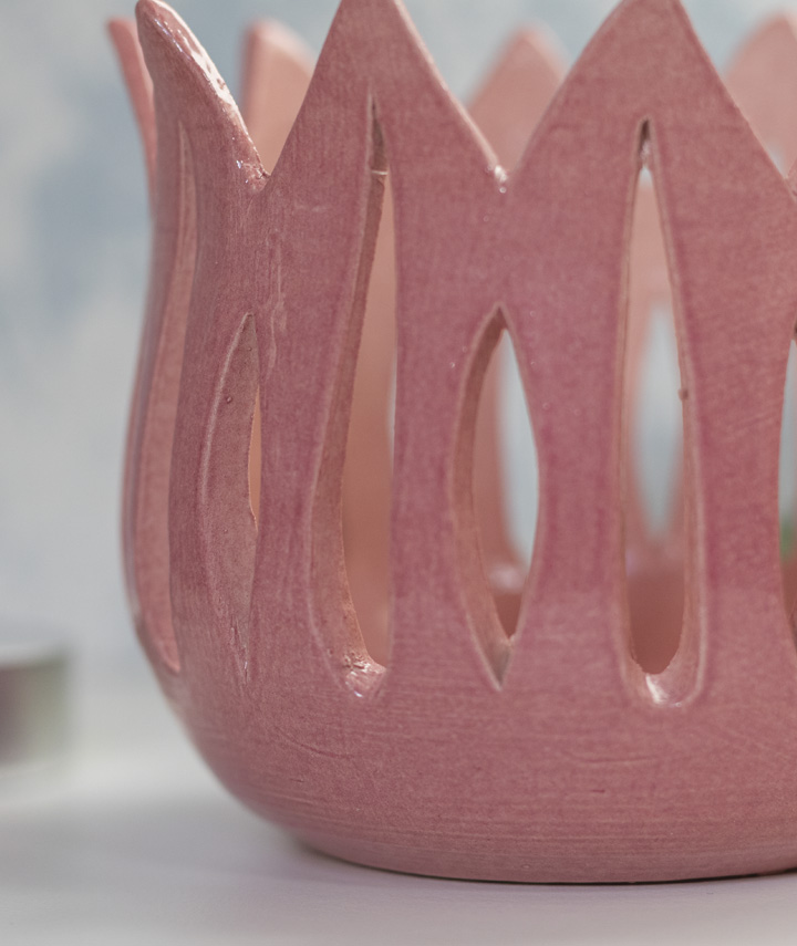 Rosa Tulpe – Keramik Teelichthalter, Kerzenlampe