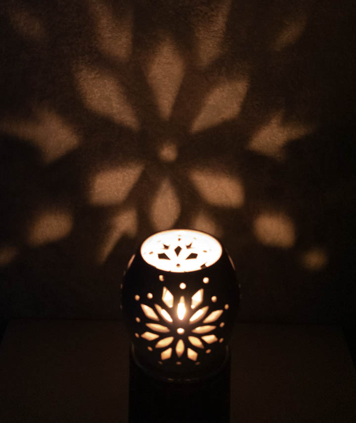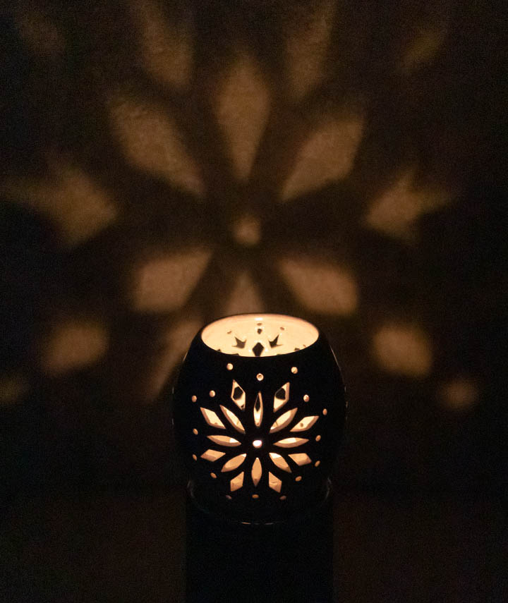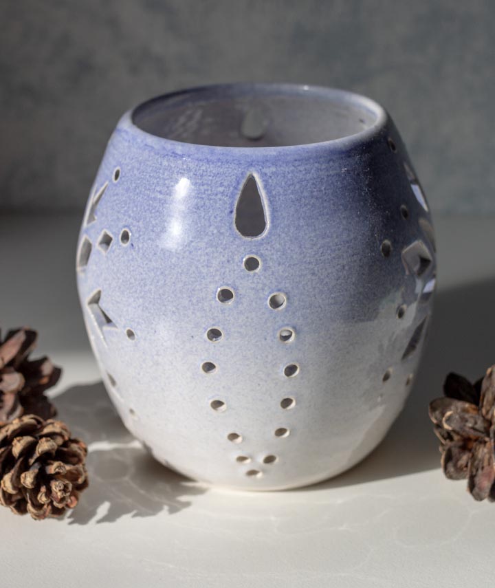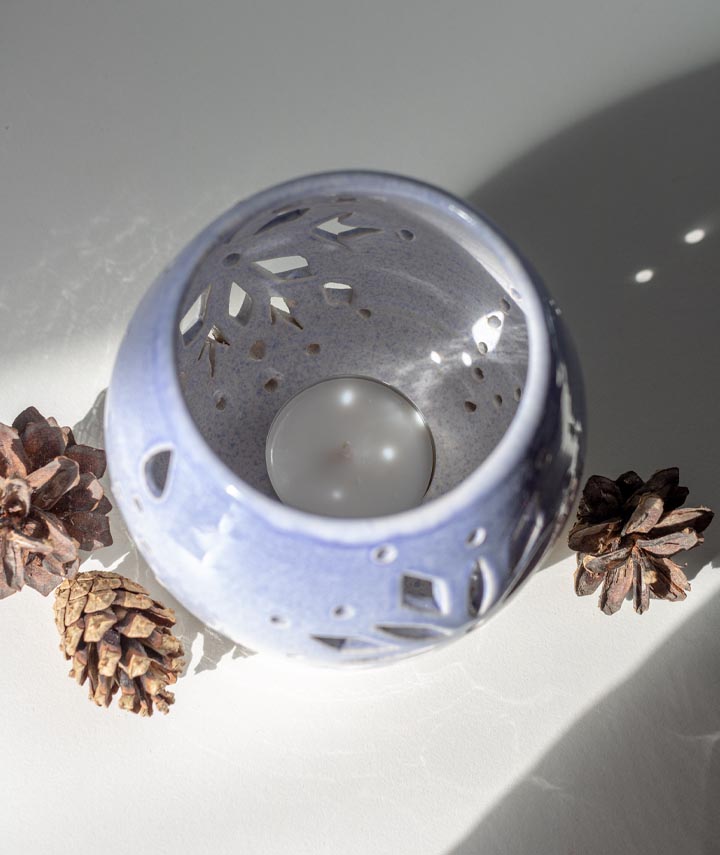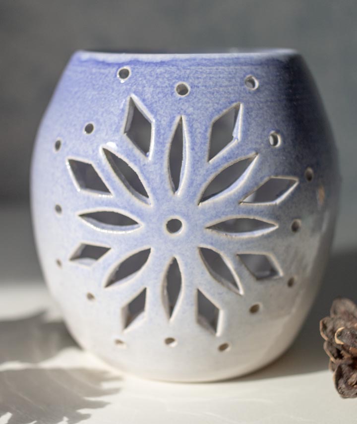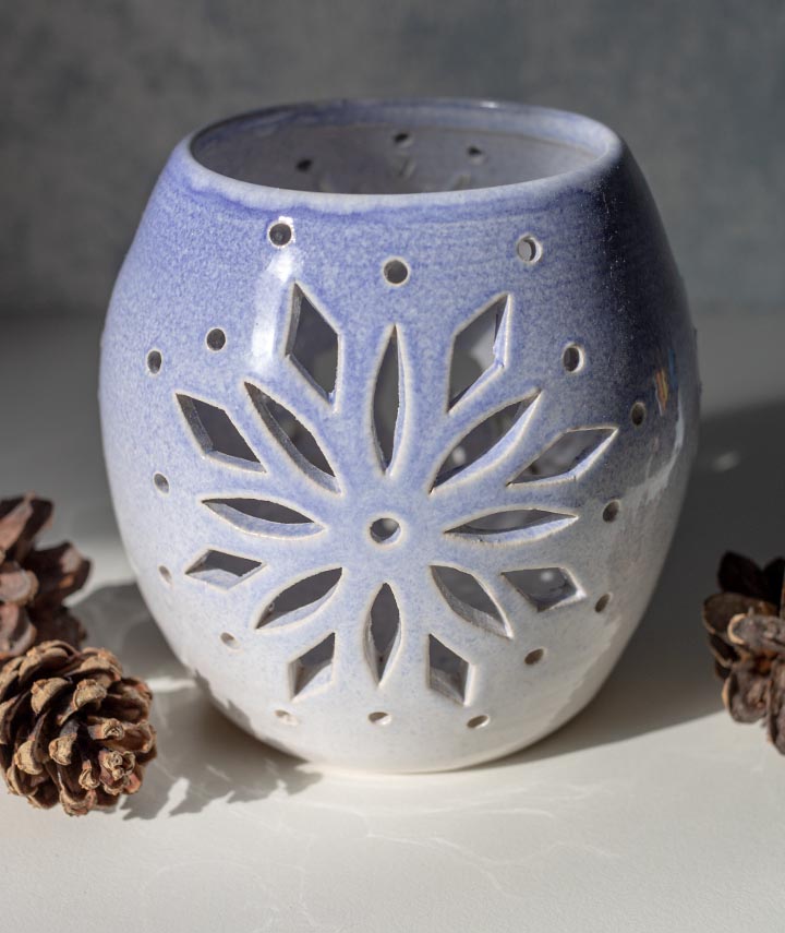 Dieser mit einem Schneeflockenmuster verzierte Kerzenhalter wurde inspiriert, als ich im Winter beobachtete, dass jede Schneeflocke, die auf mein Haar oder meinen Mantel fiel, ein anderes schönes Muster bildete. Beeindruckend und wunderbar.
