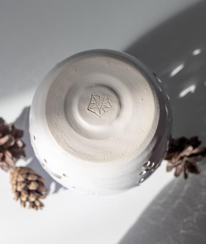 Jegliche Asymmetrie, Haarrisse, unregelmäßige Markierungen, Texturen und Oberflächen sind Teil der natürlichen Landschaft und Natur handgefertigter Keramik und können genossen werden.