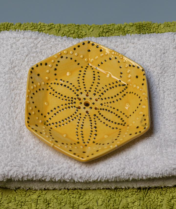 Harmonie Keramik Seifenschale mit Mandala Muster – Sonnengelb