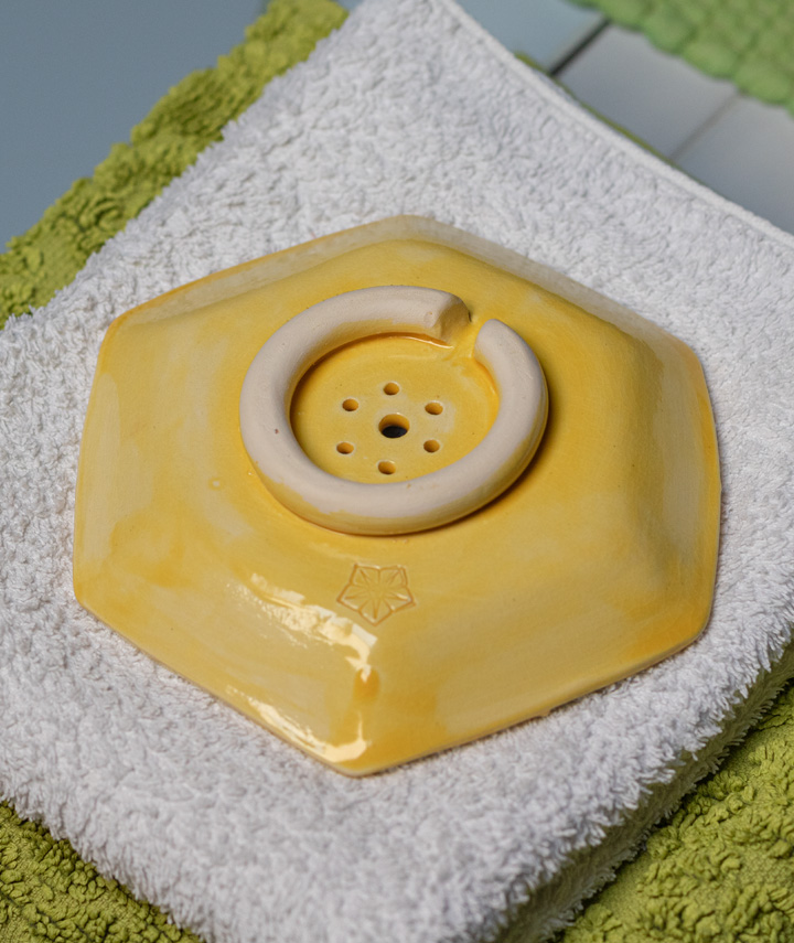 Ich habe es wirklich geliebt, diese speziellen Seifenschalen zuzubereiten. Das Mandala zu zeichnen und zu mustern war eine kleine Meditation. Diese Gelassenheit wird von jedem Stück getragen. Denn in jedem Werk steckt die Seele des Künstlers.