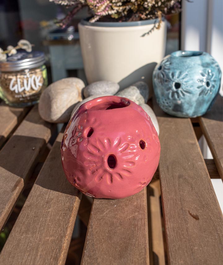 Jedes Keramikzeugstück ist ein Unikat und wird von Hand geworfen, signiert, glasiert, gebrannt und fertiggestellt.