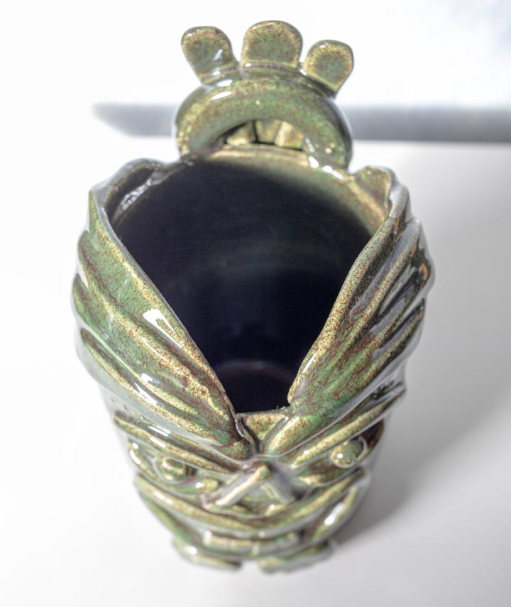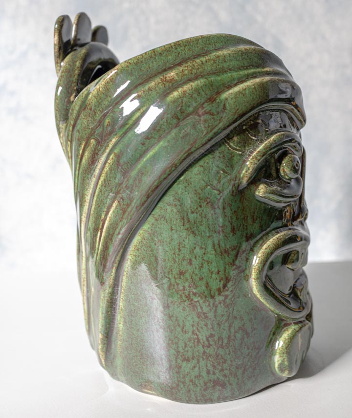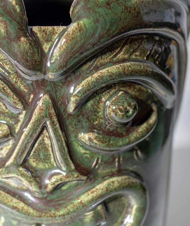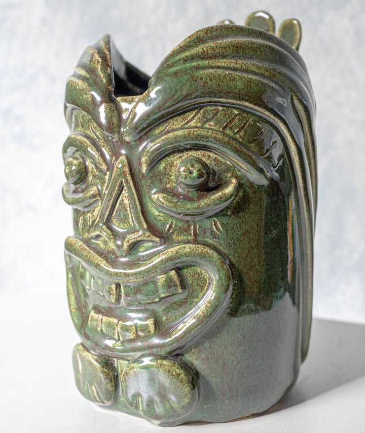 Diese Tiki-Tasse entstand, als mich ein Freund fragte, ob ich eine Tiki-Tasse herstellen könnte. Ich fragte, was ist Tiki? Dann habe ich nachgeschaut und gesagt – es ist nicht ganz mein Stil, aber ich werde es versuchen. Ich muss sagen, dass ich es wirklich genossen habe, es zu machen, denn was ich in diesen Tassen bisher hässlich fand, hat wirklich Spaß gemacht, es zu machen. Diese seltsamen gruseligen Gesichter, so dass sie unter meinen Händen geboren und zum Leben erweckt wurden, sind mir wirklich ans Herz gewachsen. Es wurde von meinen Händen bis zum letzten Haar gemacht. Wenn jemand so eine änlichen Becher haben möchte, kann sie gerne mich suchen. Aber Einheitlichkeit kann ich nicht bieten, nur Einzigartigkeit.