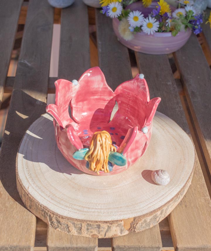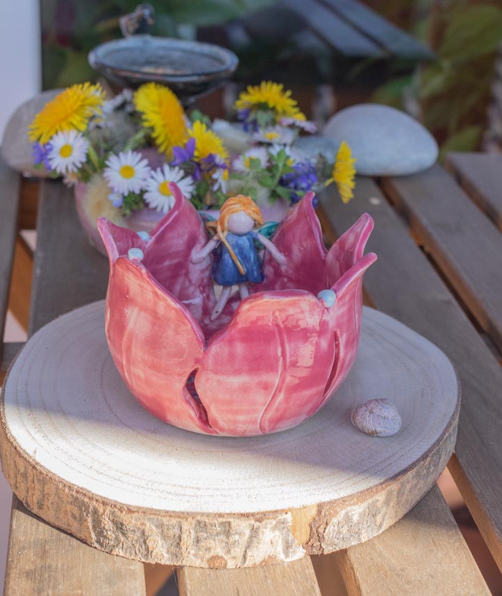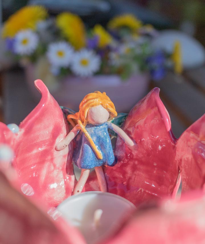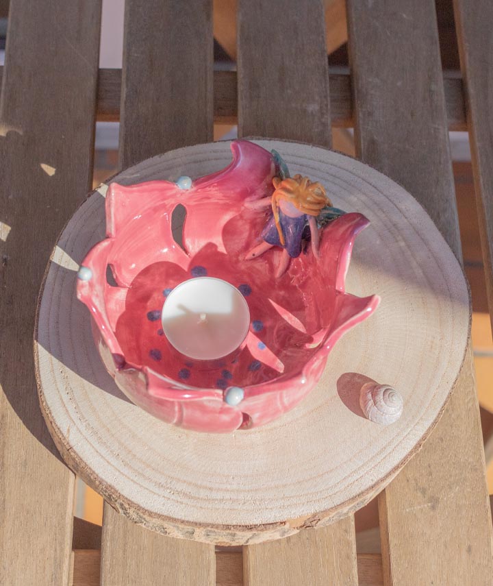 Wenn du Märchen und Feen liebst, dann wartet dieser hübsche kleine Teelichthalter mit der Blumenfee nur darauf,