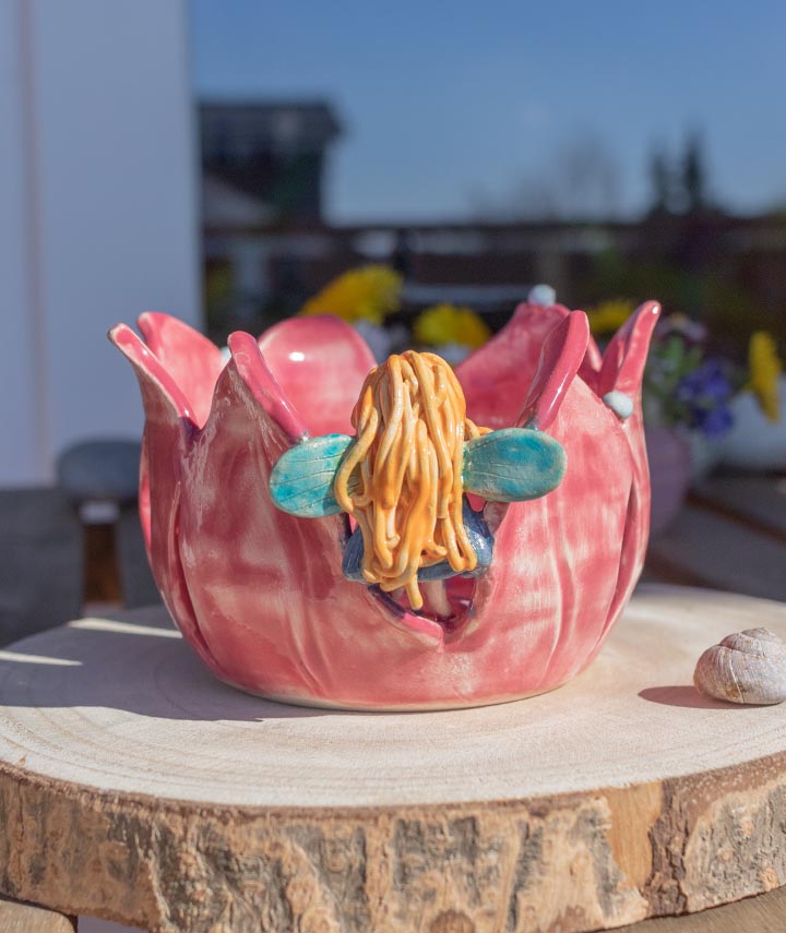 Jedes Keramikzeugstück ist ein Unikat und wird von Hand geworfen, signiert, glasiert, gebrannt und fertiggestellt.