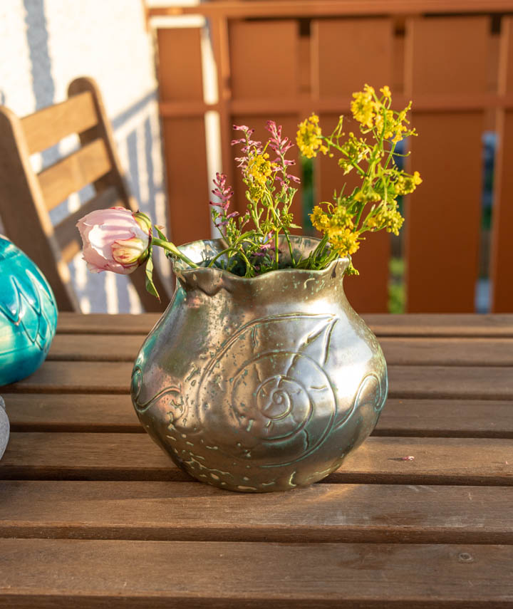 Jedes Keramikzeugstück ist ein Unikat und wird von Hand geworfen, signiert, glasiert, gebrannt und fertiggestellt.