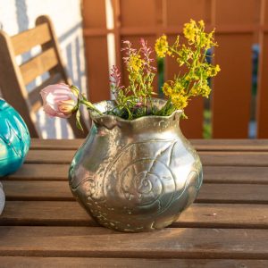 Vase mit Schneckenhausmuster und Metall Effeckt Farbe